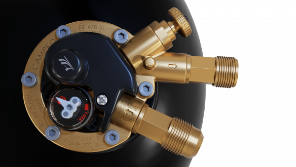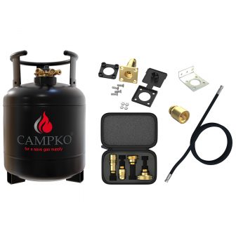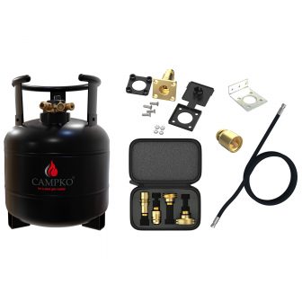 CAMPKO återfyllningsbara gasflaska av massivt stål har utvecklats för permanent installation i husbilar, husbilar eller husvagnar.