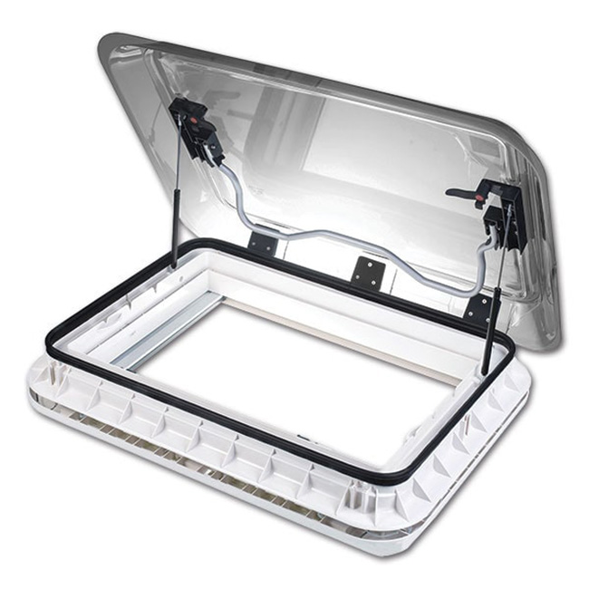 50x70cm taklucka / takfönster med mörkläggningsgardin, myggnät, aluminiumhandtag och gasdämpning..
